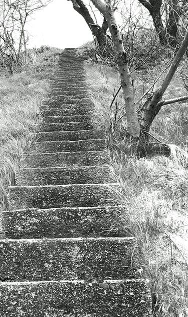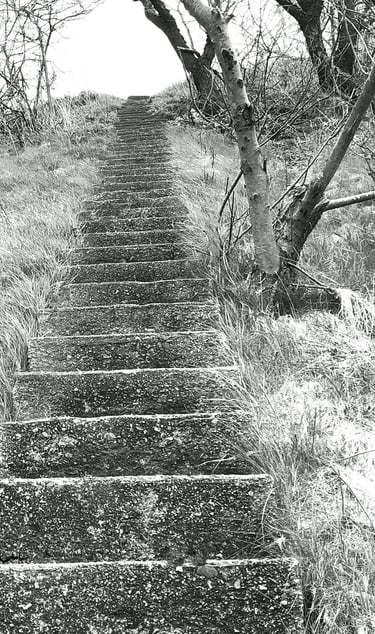 These weathered steps caught my attention as they cut through overgrown grasses and bare trees, feeling less like a path and more like a quite passage shaped by time.