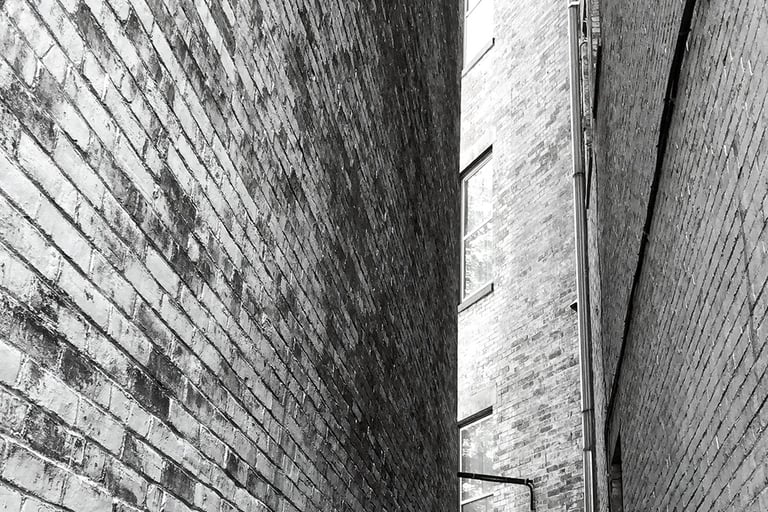 Standing at the opening of this narrow brick passage, I felt the walls closing in. The perspective and distant light pull you forward, even as the space feels tight around you.