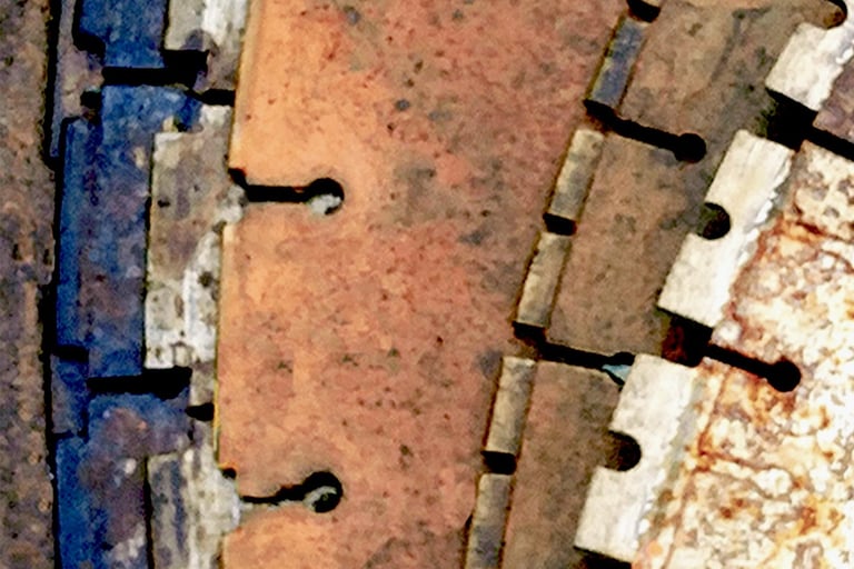 The repetition caught me first, but it was the rust and surface wear that held me. Each blade carries its own variation, yet together they form something solid and deliberate.