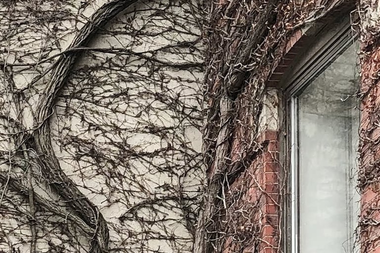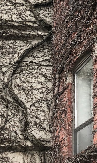 The vines felt patient, spreading across the building as if the city had forgotten them, slowly reclaiming the surface in silence.