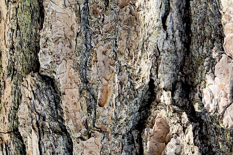 Up close the bark felt like armor — thick, scarred, and shaped by years of growth and weather.