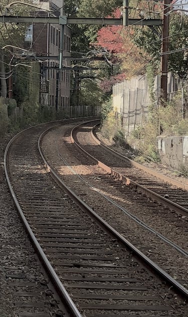 I was drawn to the way the tracks cut through the neighborhhod, running so close to the buildings before quietly curving out of sight.