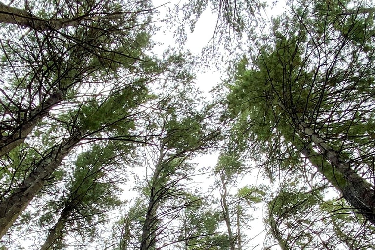 Looking up through the pine canopy, I was drawn to how the trees stretched upward, filling the frame with verticle lines and light.